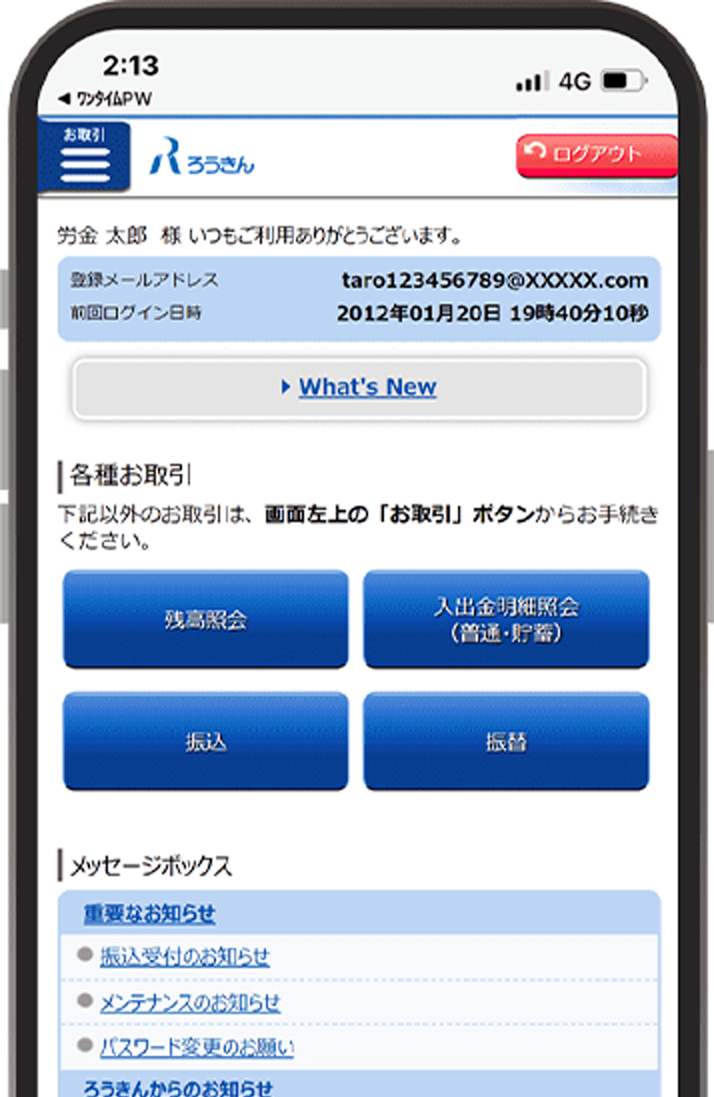 Webお知らせサービス〈ろうきん〉から届く「残高のお知らせ」などの各種帳票を、《郵送交付(書面)》に代えて《電子交付》で受取ることができます。