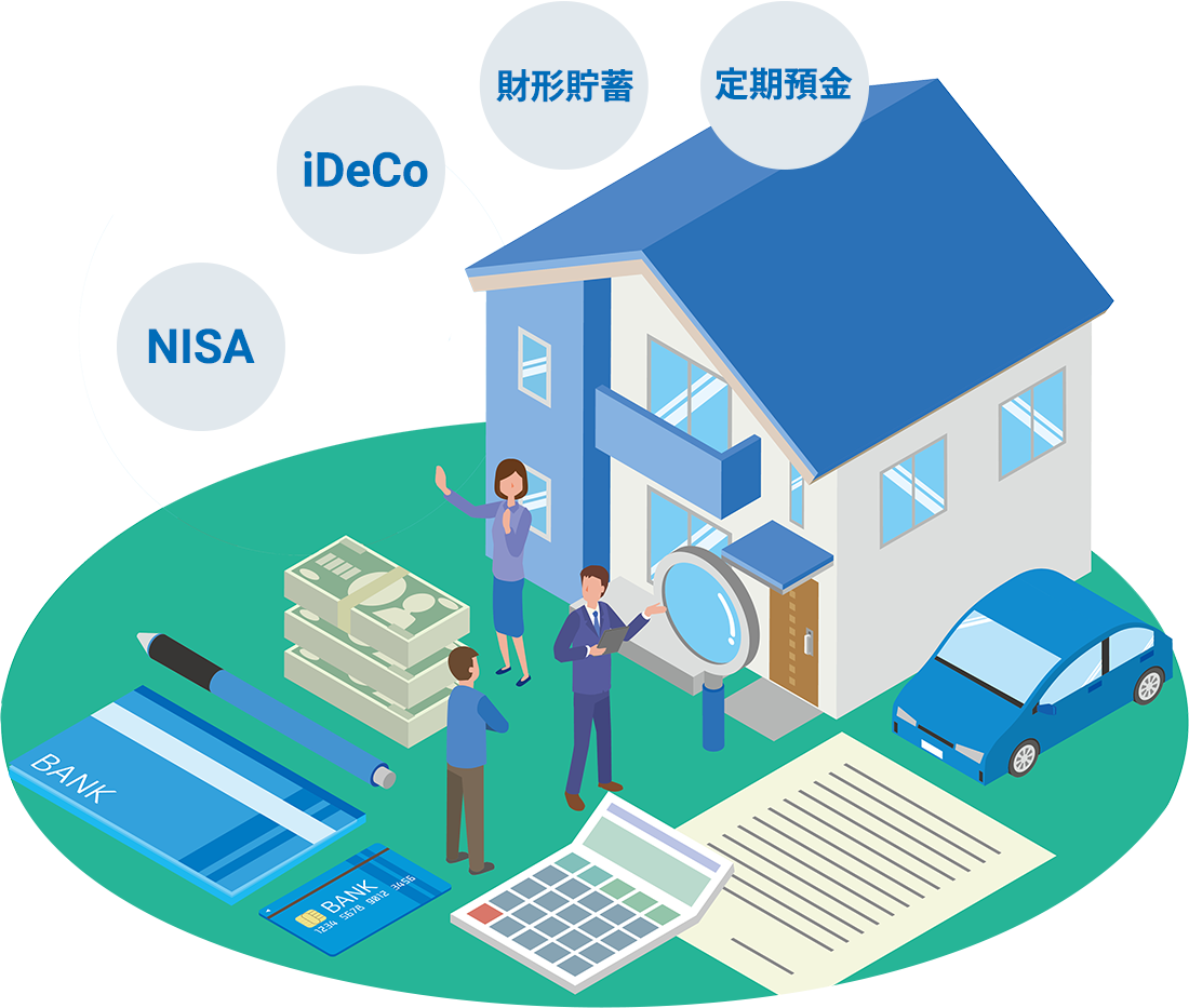 将来のライフイベントに備えて「積立預金(財形貯蓄・エース預金)」「NISA」「iDeCo(個人型確定拠出年金)」など様々な金融商品を組み合わせて計画的に資産形成をしましょう。