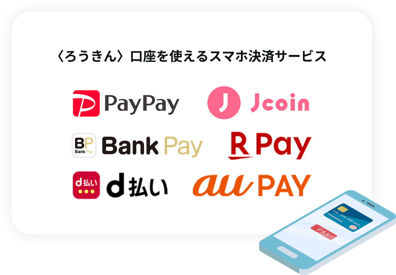 〈ろうきん〉では、Bank Payアプリを通じて利用できます。